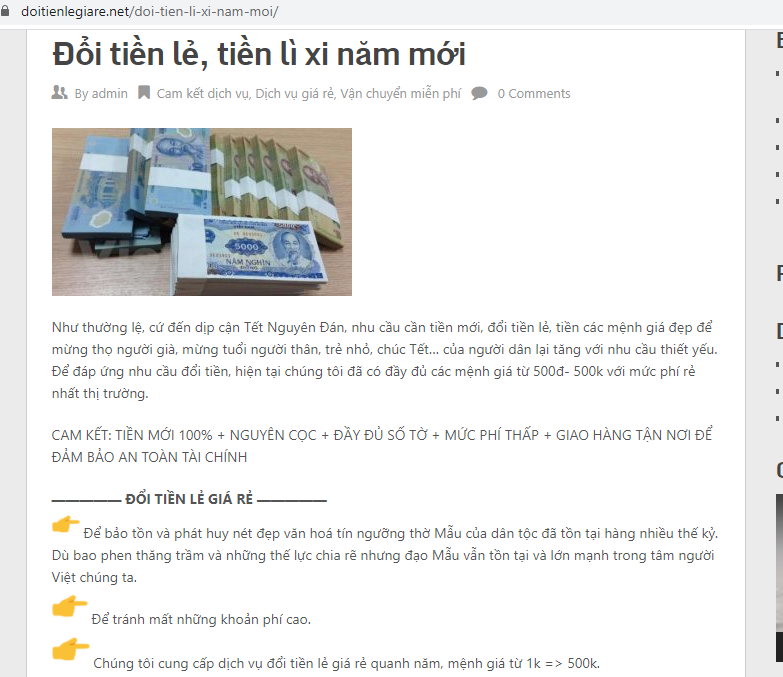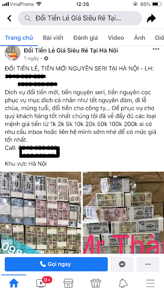 Chỉ cần gõ tìm kiếm cụm từ “đổi tiền lẻ” trên google hoặc các trang mạng xã hội như facebook, zalo, instagram…, có thể dễ dàng tìm thấy hàng trăm kết quả, với nội dung quảng cáo: Dịch vụ đổi tiền lẻ, tiền mới với giá thấp.
