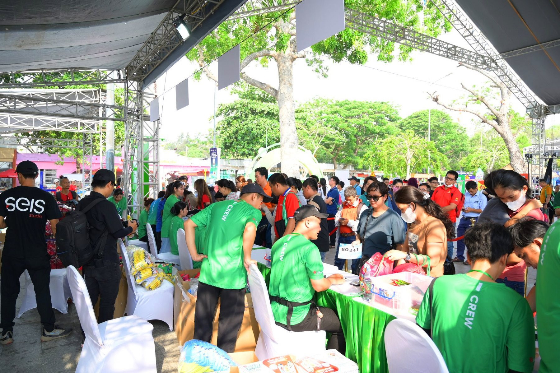 Từ 8h sáng ngày 12/4, Ban Tổ chức bắt đầu phát bib cho những runner đăng ký giải và các VĐV nhí tham dự KUN Happy Run. Khu vực này được chia theo cự li và áp dụng hình thức nhận bib qua mã nhận diện (QR Code) đã được gửi tới email của từng VĐV trước đó. Trong cái nóng miền Tây những ngày này, nhiệt độ ngoài trời có lúc lên đến 39 độ C, thành viên Ban Tổ chức và những tình nguyện viên vẫn tươi cười và sẵn sàng hỗ trợ VĐV cũng như các du khách.