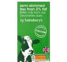 - Tên sản phẩm: Sainsbury's semi-skimmed less than 2% fat UHT milk.