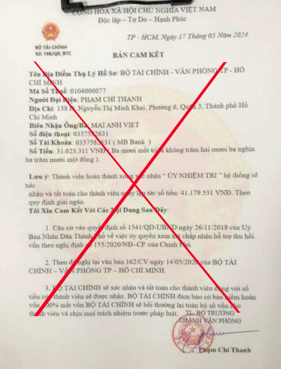 Thường gặp nhất là giả mạo giấy xác nhận ủy quyền; giả mạo Bản cam kết thực hiện ủy quyền và tất toán tiền... để yêu cầu người dân chuyển tiền cho các đối tượng lừa đảo thông qua website giả mạo của Bộ Tài chính.