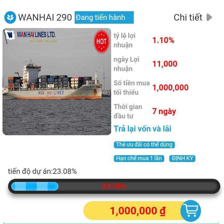 Theo như những lời quảng cáo, đây là hình thức kêu gọi đầu tư Wanhai Lines – hãng tàu lớn thứ 3 Đài Loan (Trung Quốc) và lớn 11 thế giới, với nhiều chi nhánh trên thế giới, trong đó có Việt Nam.