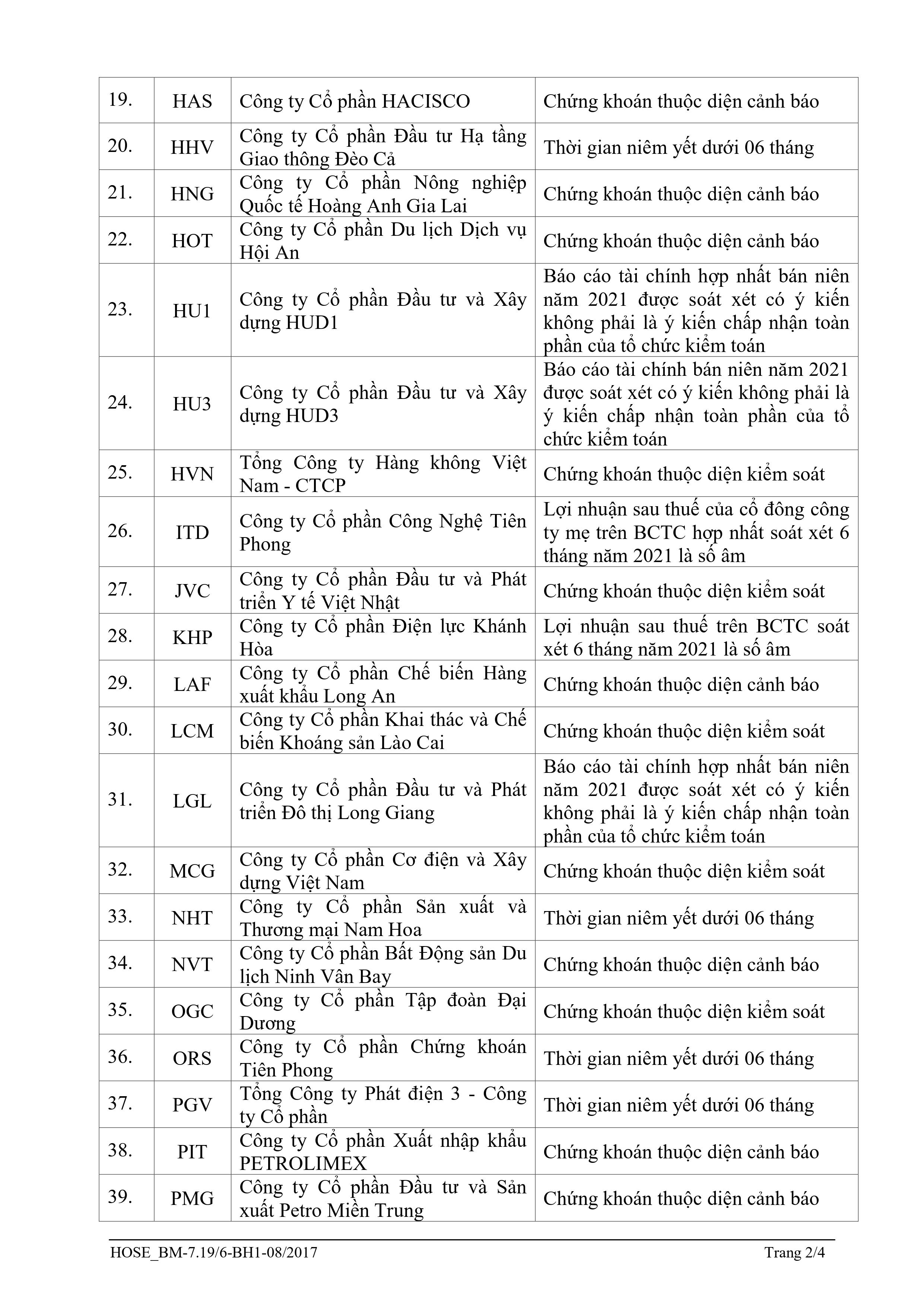 Phần lớn các cổ phiếu bị cắt margin nằm trong diện bị cảnh báo hoặc kiểm soát. Trong số này có nhiều cổ phiếu đáng chú ý như cổ phiếu HAG của Hoàng Anh Gia Lai, YEG của Tập đoàn Yeah1, HVN của Tổng công ty hàng không Việt Nam, DLG của Tập đoàn Đức Long Gia Lai, ...