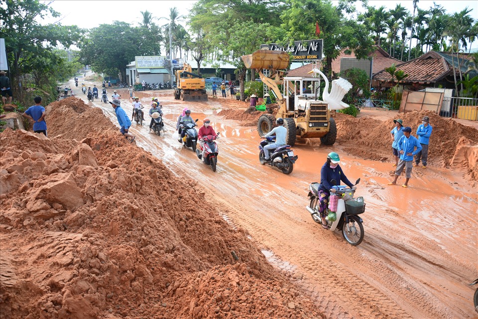 Đem ngày 20.4, rạng sáng 21.4, tuyến đường du lịch ven biển Huỳnh Thúc Kháng, thuộc phường Mũi Né, TP.Phan Thiết (Bình Thuận) đã bị cát đỏ từ dự án Goldsand Hill Villa đổ tràn xuống đường như lũ cuốn gây ách tắc nhiều giờ liền, giao thông qua khu vực bị gián đoạn, nhà hàng thiệt hại.