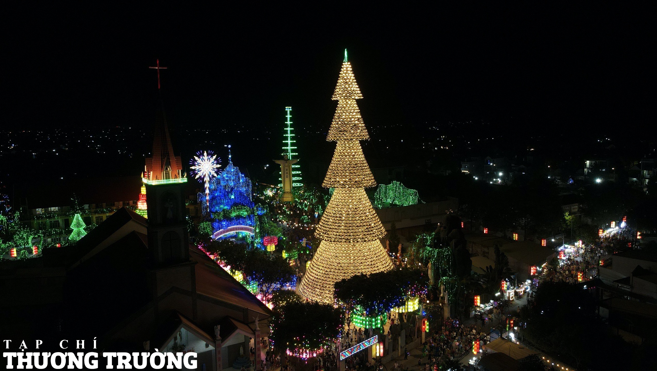 Cây thông Noel cao 5 tầng với chiều cao 47m được xếp từ hơn 4.200 chiếc nón lá, thu hút hàng nghìn người dân đến tham quan tại TP Biên Hòa, Đồng Nai.
