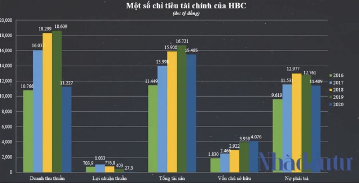 Như năm 2016, doanh thu thuần của Hòa Bình là 10.766 tỷ đồng thì đến năm 2017 đã là 16.037 tỷ đồng, con số tiếp tục tăng trưởng lên mức 18.609 tỷ đồng trong năm 2019. Quy mô tổng tài sản cũng duy trì ở mức cao và tại ngày 31/12/2019 là 16.721 tỷ đồng.