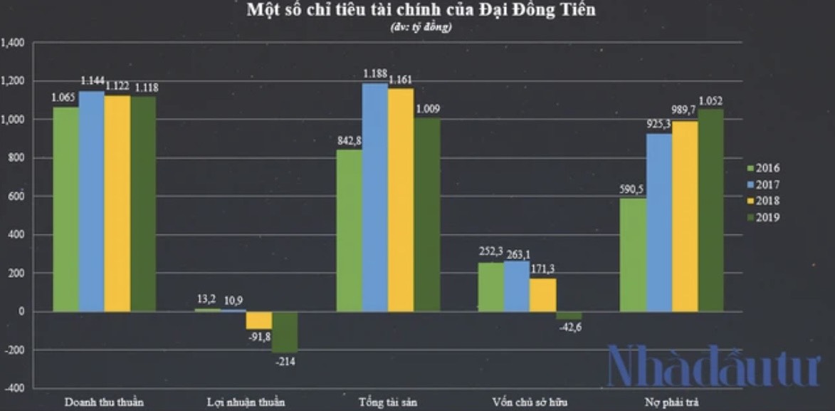 Trong giai đoạn 2016-2019, doanh thu thuần của Nhựa Đại Đồng Tiến (công ty mẹ) luôn duy trì trên mức 1.000 tỷ đồng, như năm 2018 là 1.122 tỷ đồng và 2019 là 1.118 tỷ đồng. Dẫu vậy lợi nhuận thuần của công ty này lại không mấy khả quan khi có xu hướng giảm dần. Theo đó, năm 2017 Đại Đồng Tiến báo lãi 10,9 tỷ đồng, nhưng sang năm 2018 lại lỗ hơn 91 tỷ, riêng năm 2019 lỗ thuần 214 tỷ đồng.