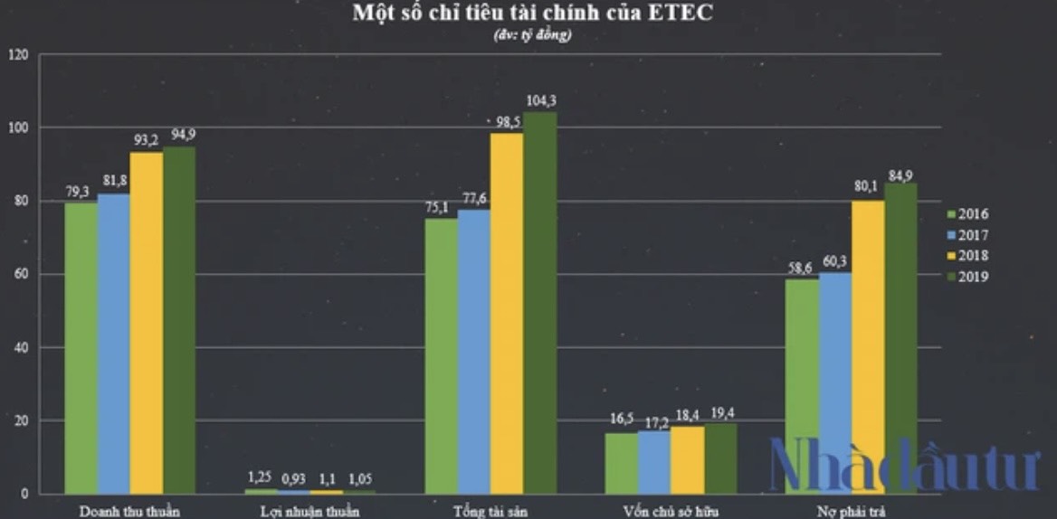 Về tình hình kinh doanh, giai đoạn 2016-2019, doanh thu thuần của ETEC ghi nhận sự tăng trưởng, như năm 2016 là 79,3 tỷ đồng thì đến năm 2018 là 93,2 tỷ đồng. Năm 2019, doanh thu thuần của ETEC đạt 94,4 tỷ đồng, tăng 1,2% so với năm trước, lợi nhuận thuần tương ứng ở mức 1,05 tỷ đồng. Tại ngày 31/12/2019, tổng tài sản của công ty này đạt 104,3 tỷ đồng.