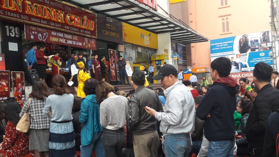 Theo quan niệm dân gian, cứ ngày mùng 10 tháng giêng âm lịch hay còn gọi là ngày vía Thần Tài, người dân theo nhau mua vàng để được cả năm may mắn, phát tài. Chẳng biết thực hư ra sao nhưng trước các cửa hàng vàng tại thủ đô Hà Nội, từ sáng sớm đã có rất đông người xếp hàng chờ mua. Để có thể mua vàng sớm có người đã đợi từ khi trời còn chưa sáng.