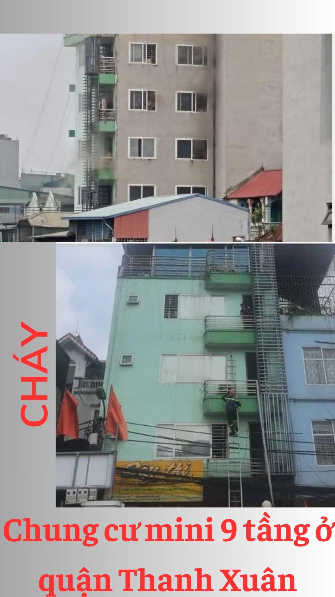 Khoảng 12h30 trưa ngày 19/5, một đám khói đen bốc lên từ căn hộ tầng 8 chung cư mini 9 tầng, 1 tum ở phố Quan Nhân, quận Thanh Xuân.