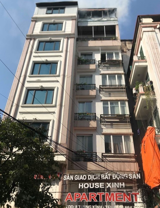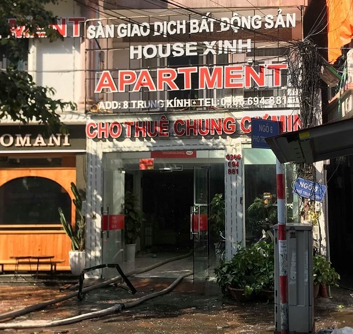 Chung cư mini bị cháy nằm trên đường Trung Kính, nhiều người hoảng hốt chạy thoát thân