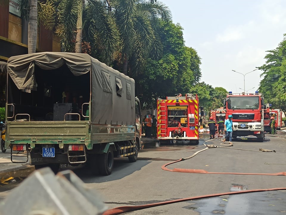 Nhận tin báo, Công an thành phố Thủ Đức phối hợp cùng Đội Cảnh sát phòng cháy, chữa cháy và cứu nạn, cứu hộ Công an thành phố Thủ Đức đã điều hơn 10 xe chữa cháy cùng hàng chục cán bộ có mặt triển khai dập lửa.