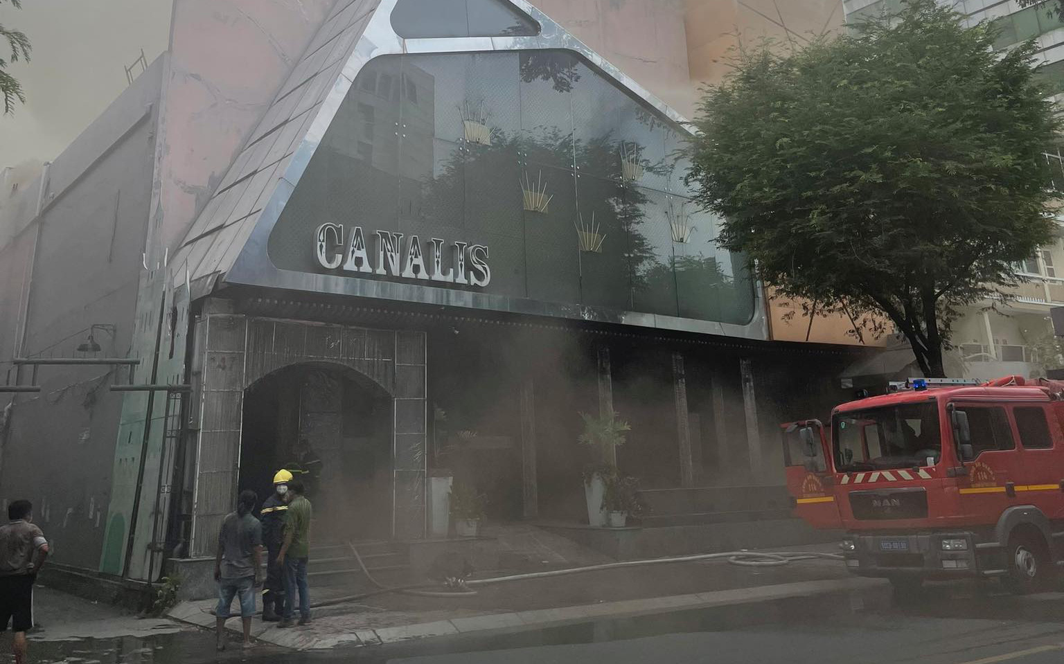 Thời điểm trên, nhiều người phát hiện quán bar Canalis ở số 147 Hai Bà Trưng bốc cháy. Khói từ quán bar bốc lên mù mịt.