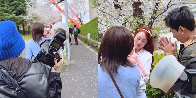 Đến Nhật Bản, gia đình Chi Bảo có nguyên một ekip đi theo, nhờ đó cho ra đời những hình ảnh đẹp mãn nhãn với hoa anh đào.
