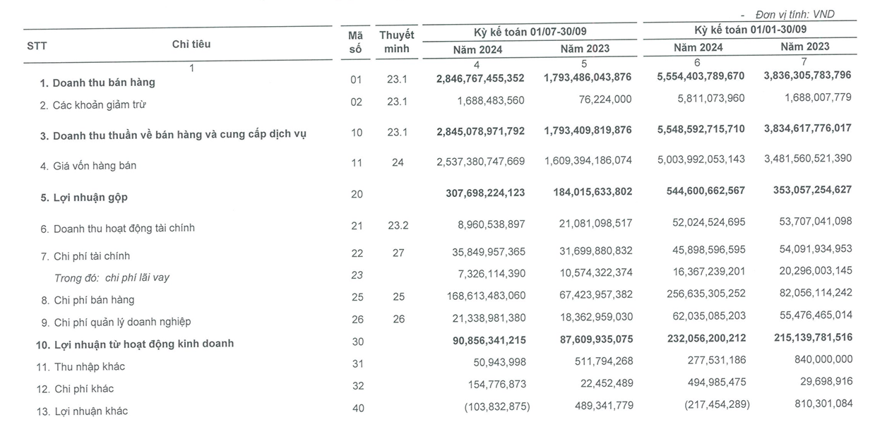 Theo báo cáo giải trình, doanh nghiệp cho biết doanh số bán hàng tăng gần 59% nhưng lợi nhuận sau thuế chỉ tăng hơn 6% so với cùng kỳ năm trước do giá nguyên liệu tăng đột biến ở cuối quý 3 khiến cho việc trả nợ các đơn hàng không đạt hiệu quả.