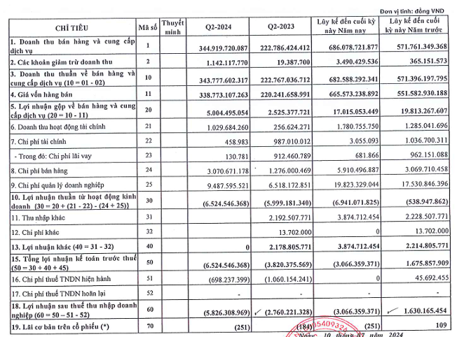 Lũy kế 6 tháng đầu năm, doanh thu VNSteel tăng mạnh 71% lên hơn 570 tỷ đồng nhưng công ty vẫn báo lỗ 3 tỷ đồng, cùng kỳ lãi 2 tỷ đồng.