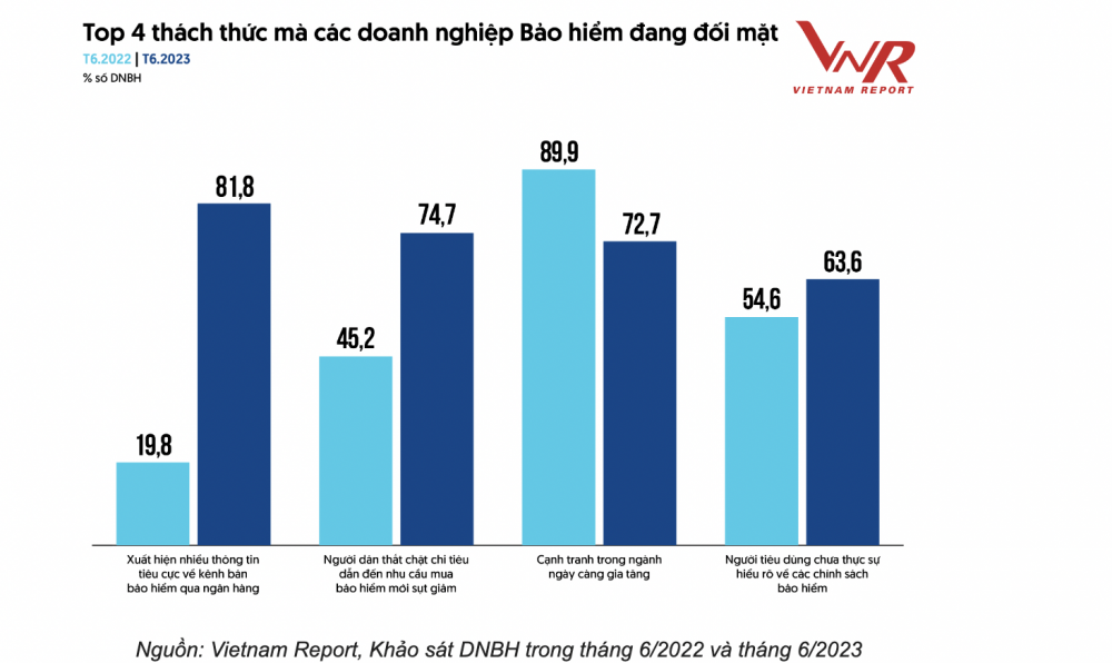 Theo đó, có đến 81,8% doanh nghiệp và chueyen gia của Vietnam Report cho rằng việc xuất hiện nhiều thông tin tiêu cực về bảo hiểm nhân thọ là thách thức lớn nhất mà các doanh nghiệp gặp phải trong năm 2023.