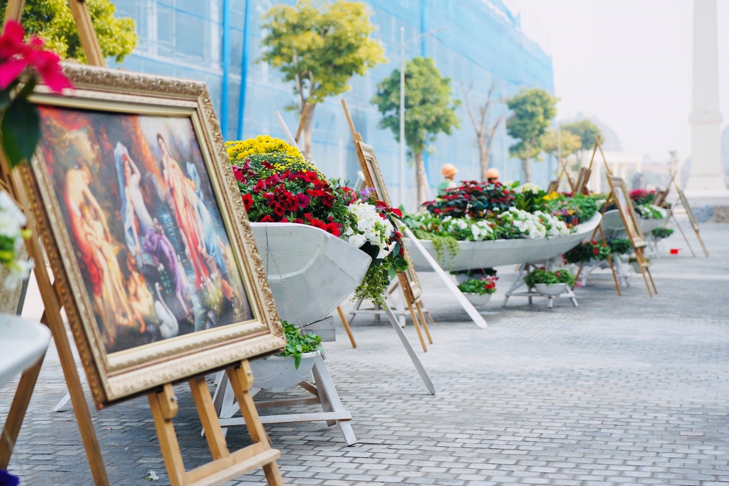 Một điểm đến cũng không thể bỏ lỡ chính là khu vực phố đi bộ The Rome được điểm tô bởi 12 chiếc thuyền hoa sinh động với vô số những loại hoa tỏa hương khoe sắc. 12 chiếc thuyền kết hoa rực rỡ tượng trưng cho 12 con giáp, chở những mùa bội thu đủ màu sắc, với ý nghĩa thu hoạch thành quả lao động, đón mừng một năm mới “rộn ràng vươn khơi, thuận buồm xuôi gió”. Những đoàn thuyền rẽ sóng ra khơi không chỉ đơn thuần là đánh bắt cá mà mang trong mình khát vọng lớn lao, hoài bão lớn chinh phục biển cả.