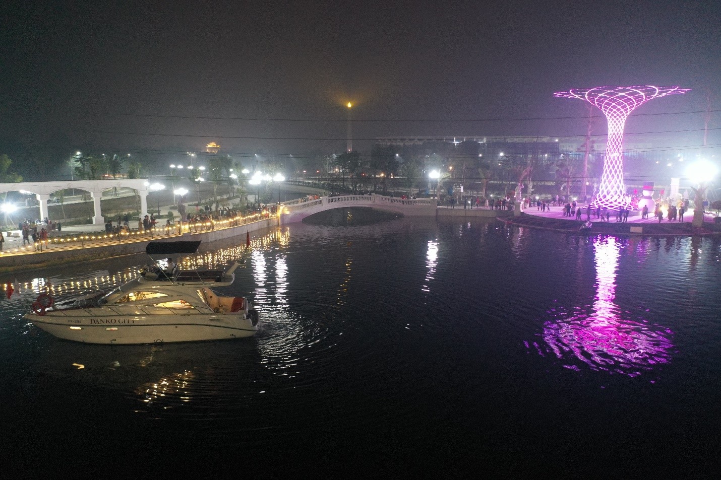 Du thuyền và cây ánh sáng trong công viên hồ Mắt Rồng – KĐT Danko City.