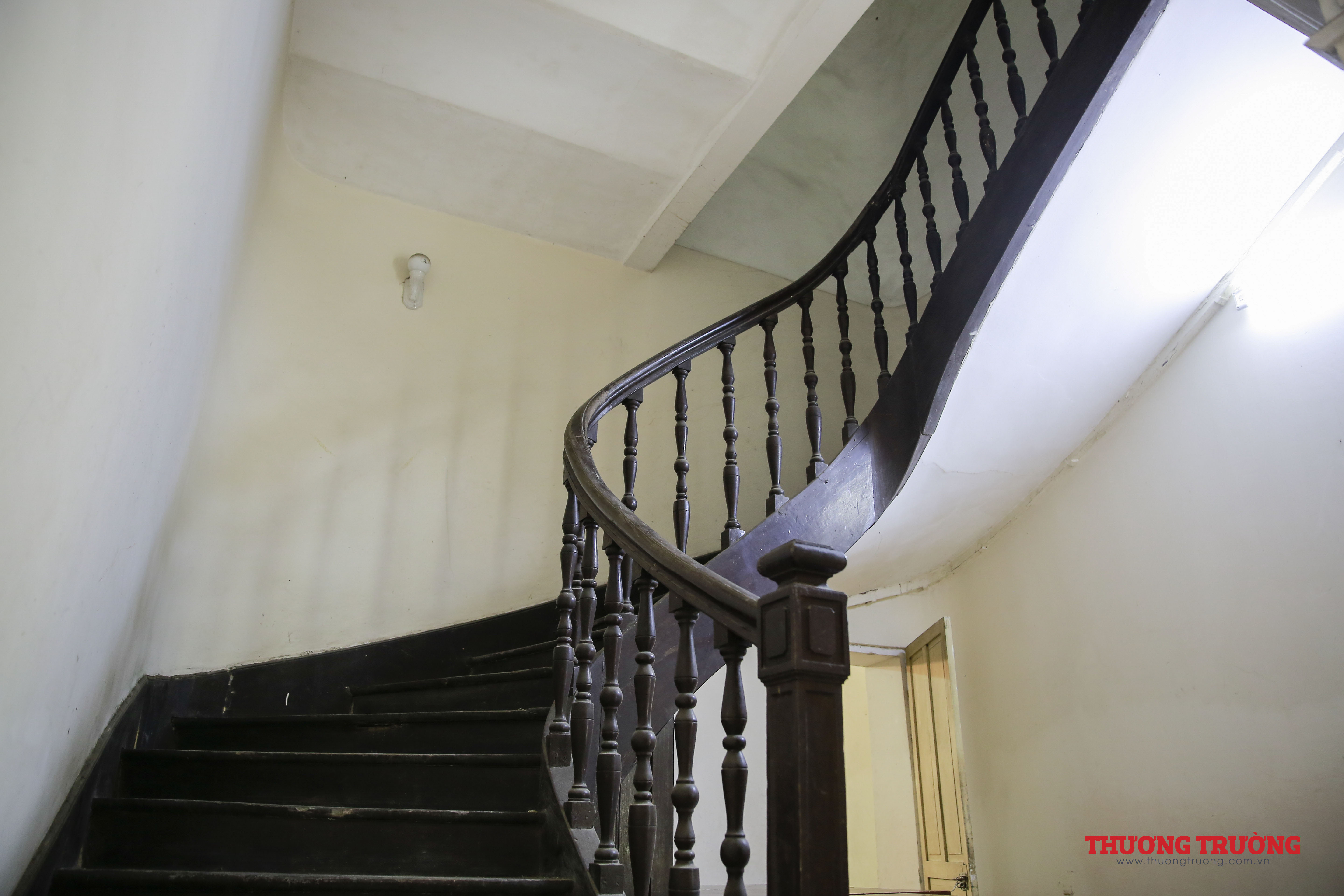 Cầu thang lên tầng được làm bằng gỗ lim, sơn đen. Tới nay, công trình này vẫn còn nguyên vẹn.