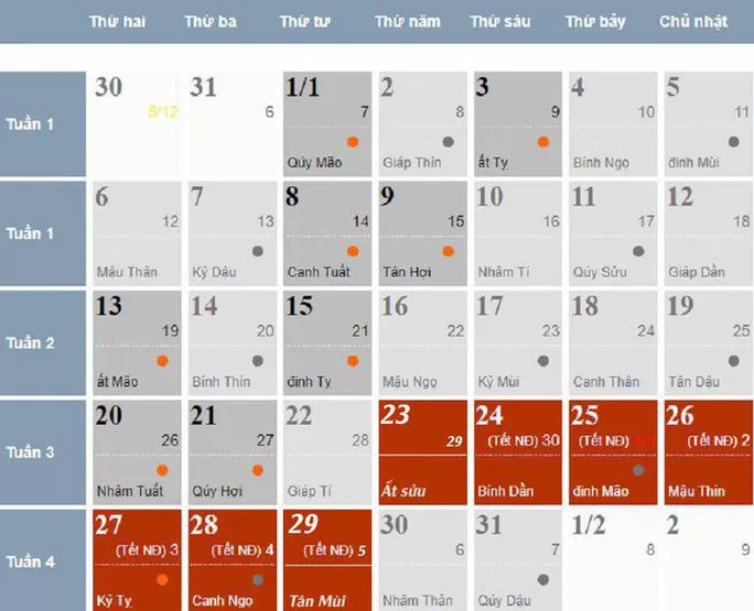 Lịch nghỉ Tết Canh Tý 2020