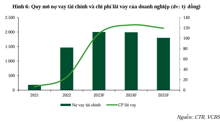 Các mảng kinh doanh tạo dòng tiền truyền thống (vận hành khai thác, xây lắp viễn thông) tăng trưởng chậm lại. Với việc quy mô nợ vay tăng mạnh trong nửa cuối 2022, CTR dự báo sẽ ghi nhận chi phí lãi vay gia tăng đáng kể từ năm 2023 (đặc biệt trong môi trường lãi suất neo cao) và tác động tiêu cực đến hiệu quả lợi nhuận của doanh nghiệp.