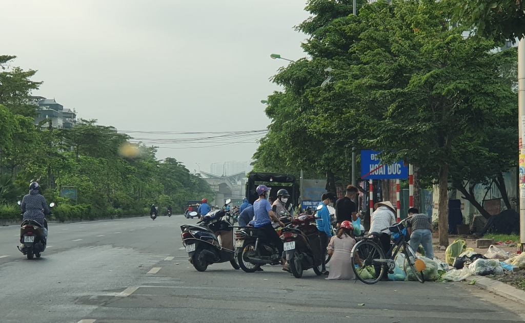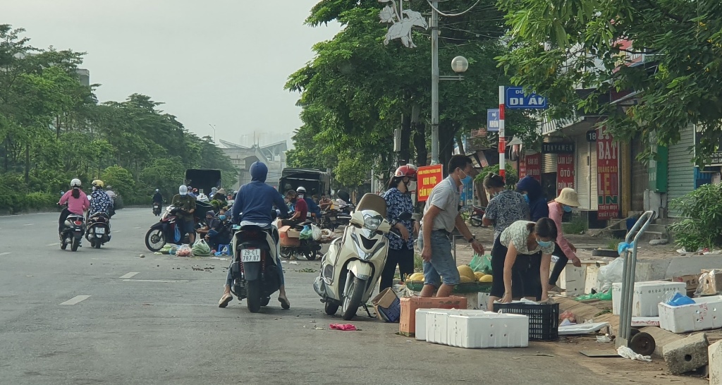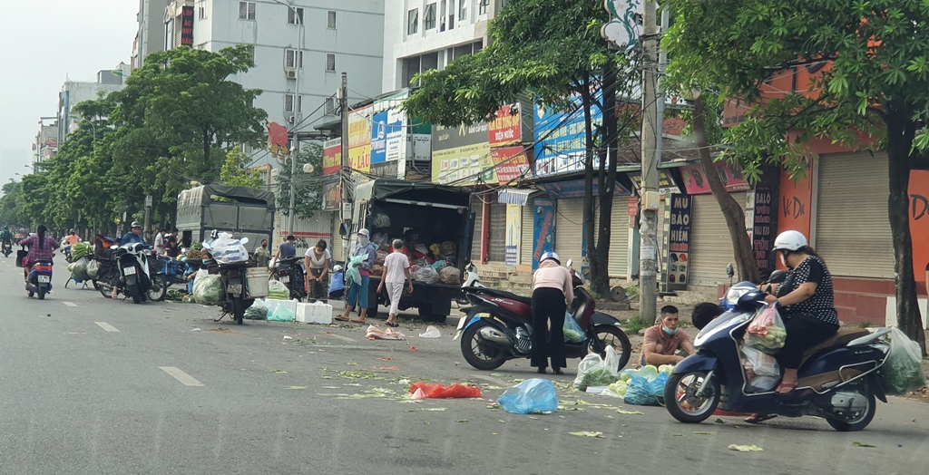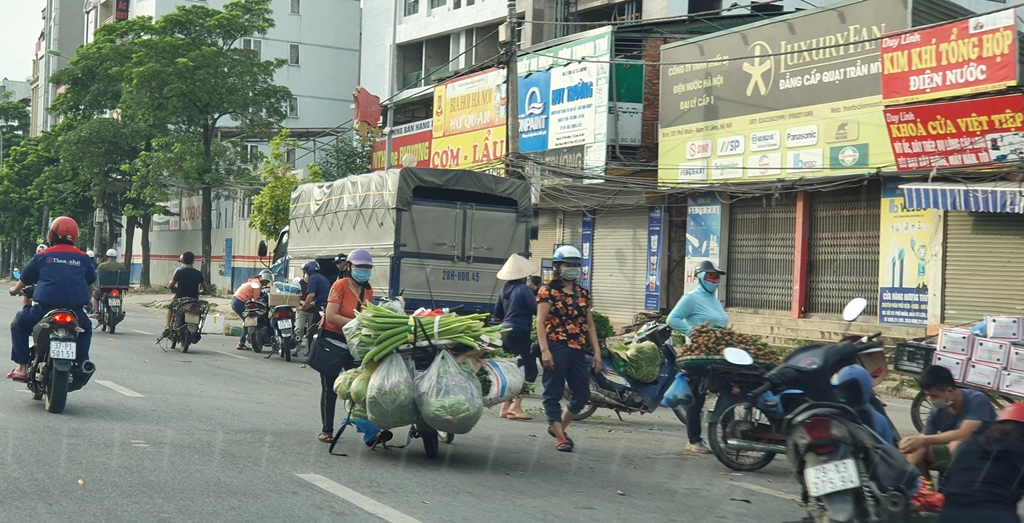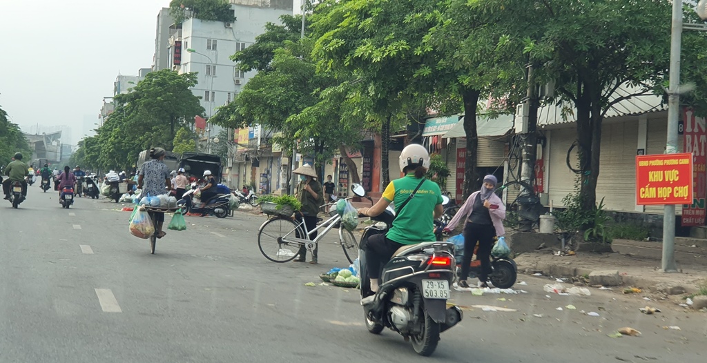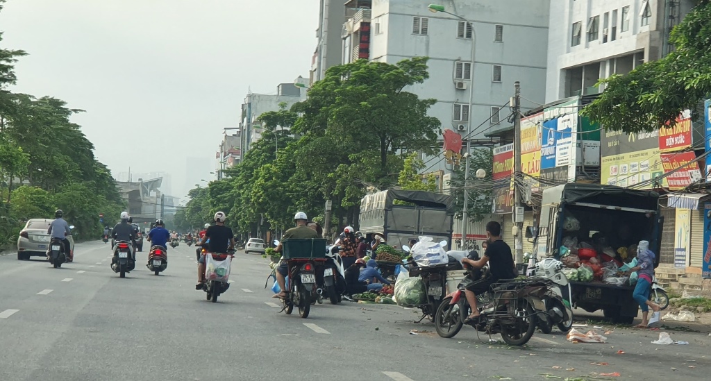 Hiện, Hà Nội đang thực hiện giãn cách xã hội trên phạm vi toàn thành phố đến 6 giờ ngày 6/9. Tuy nhiên, trên Quốc lộ 32, gần chợ Nhổn (Phương Canh, Nam Từ Liêm), vẫn diễn ra chợ cóc họp vào các buổi sáng nhưng chưa bị dẹp bỏ.