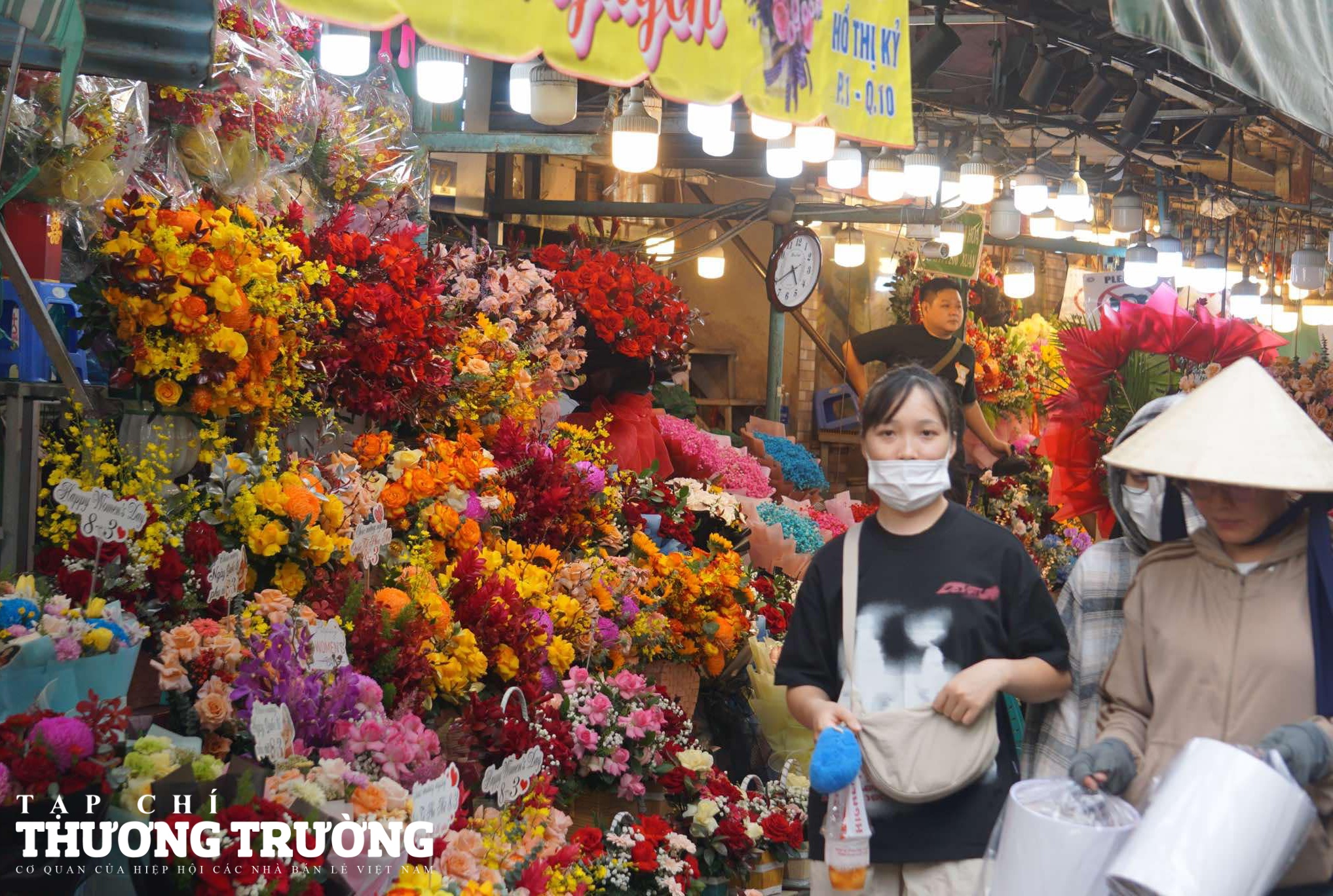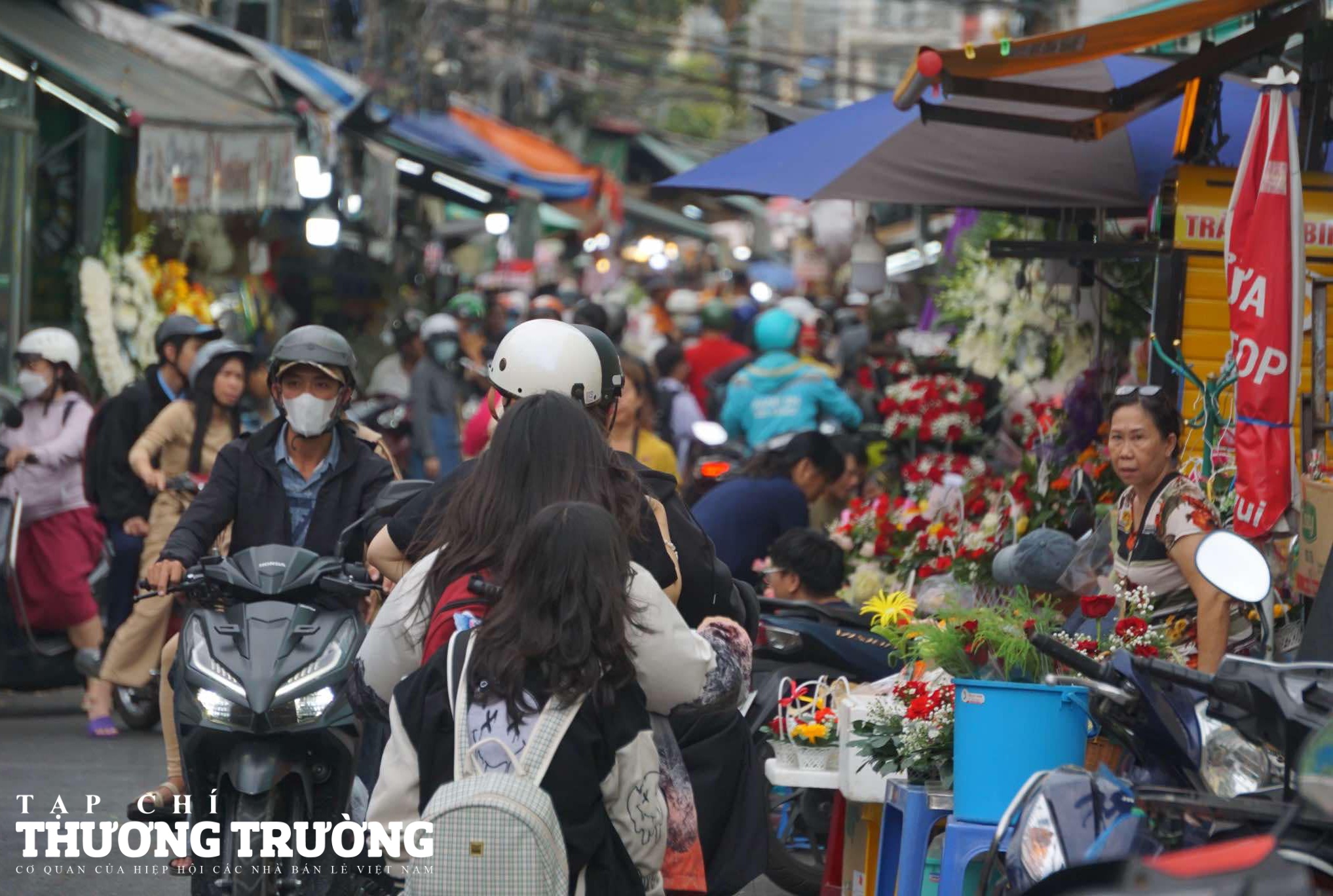 Chợ hoa Hồ Thị Kỷ (quận 10), chợ hoa tươi lớn nhất TPHCM, tấp nập khách đến mua hoa.