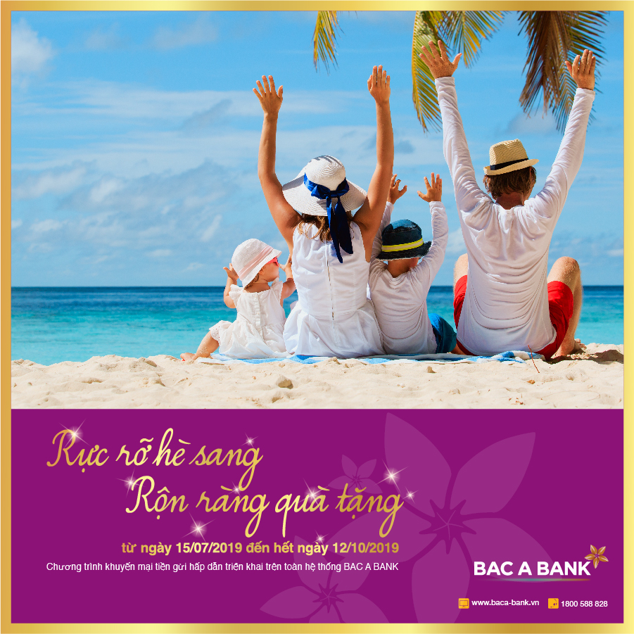 Mang tên “Rực rỡ hè sang, Rộn ràng quà tặng”, BAC A BANK quyết “chơi lớn” khi vừa tặng thêm lãi suất, vừa tặng quà lại tặng thêm cả những ưu đãi khi sử dụng một số dịch vụ tài chính của ngân hàng cho khách gửi tiết kiệm.
