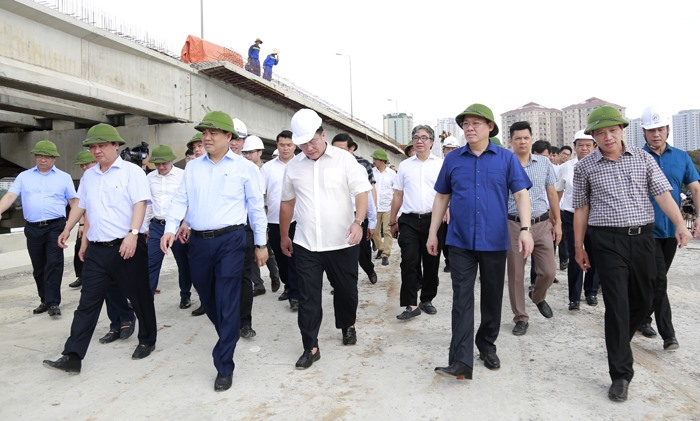 Về đoạn đường trên cao từ Ngã Tư Sở đến ngã Tư Vọng, Bí thư Thành ủy chốt tiến độ hoàn thành vào dịp Quốc khánh 2/9 để chào mừng kỷ niệm 1010 năm Thăng Long - Hà Nội và Đại hội Đảng bộ Thành phố lần thứ XVII.