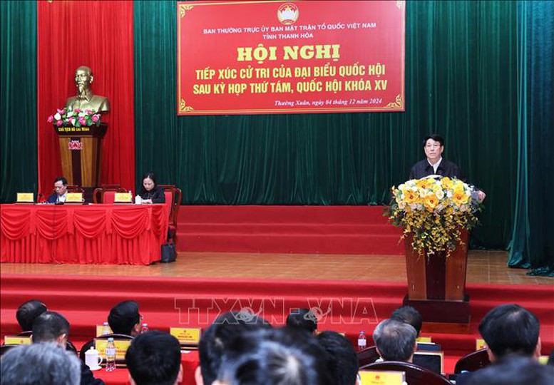 Ngày 4/12, Chủ tịch nước Lương Cường và Đoàn đại biểu Quốc hội tỉnh Thanh Hóa đã tiếp xúc cử tri tại huyện Thường Xuân, tỉnh Thanh Hoá, nhằm thông báo về kết quả kỳ họp thứ 8, Quốc hội khoá XV, cũng như lắng nghe, giải đáp kiến nghị của cử tri.