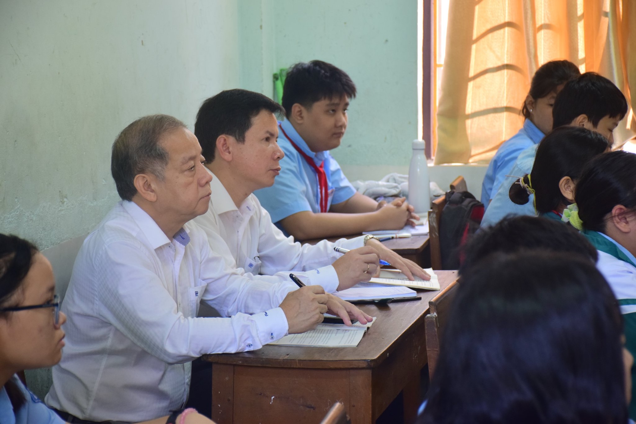 Ông Phan Ngọc Thọ cùng ông Nguyễn Tân dự giờ tiết học đạo đức của học sinh.Tham dự tiết học Giáo dục công dân của lớp 9/7 Trường THCS Trần Cao Vân, đặt vấn đề trước lúc vào tiết học, Chủ tịch UBND tỉnh chia sẻ hôm nay, Chủ tịch UBND tỉnh sẽ cùng ngồi học với các em học sinh môn Giáo dục công dân để nắm được cách dạy cũng như cách truyền đạt về nội dung, phương pháp, hình thức giáo dục đạo đức, lối sống thông qua bài giảng trên lớp. “Thầy và trò cứ dạy và học bình thường như mọi ngày, như không có ai ngồi dự trong lớp”.