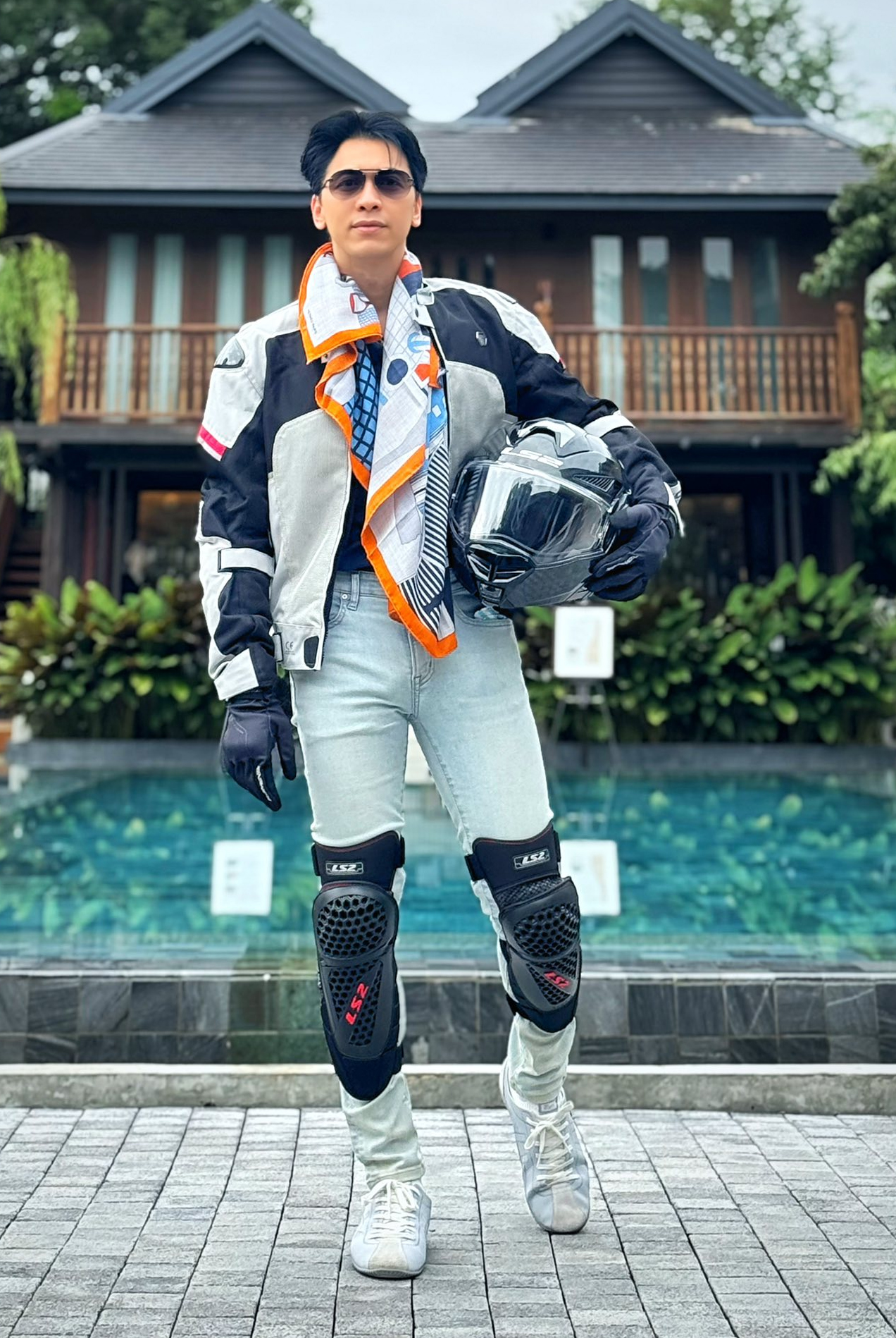 "Lần đầu cầm lái chiếc 500cc khởi hành từ Chiangmai, vượt qua 4088 cua quanh co ôm những dãy núi ngút ngàn... đủ những nắng, mưa, sương mù, gió bạt… Đọng lại là những trải nghiệm cùng mấy đứa em khám phá những cung đường mới mẻ. Cả đám giành trọn 6 ngày để hát đủ.. 7749 lần chúc mừng sinh nhật", anh viết.