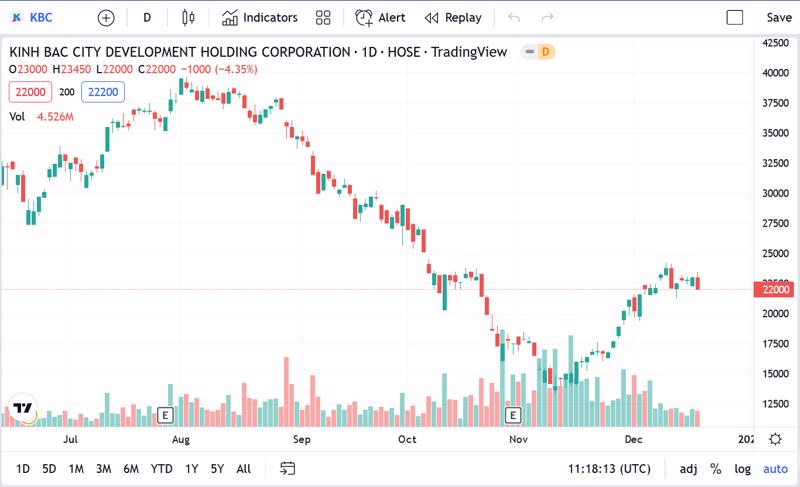 Biểu đồ giá cổ phiếu KBC thời gian qua.
