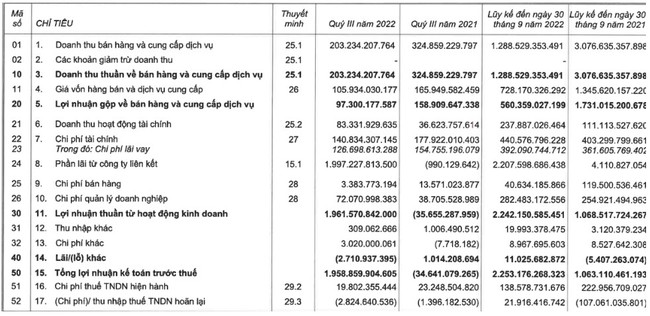 Báo cáo tài chính quý III 2022 của KBC.