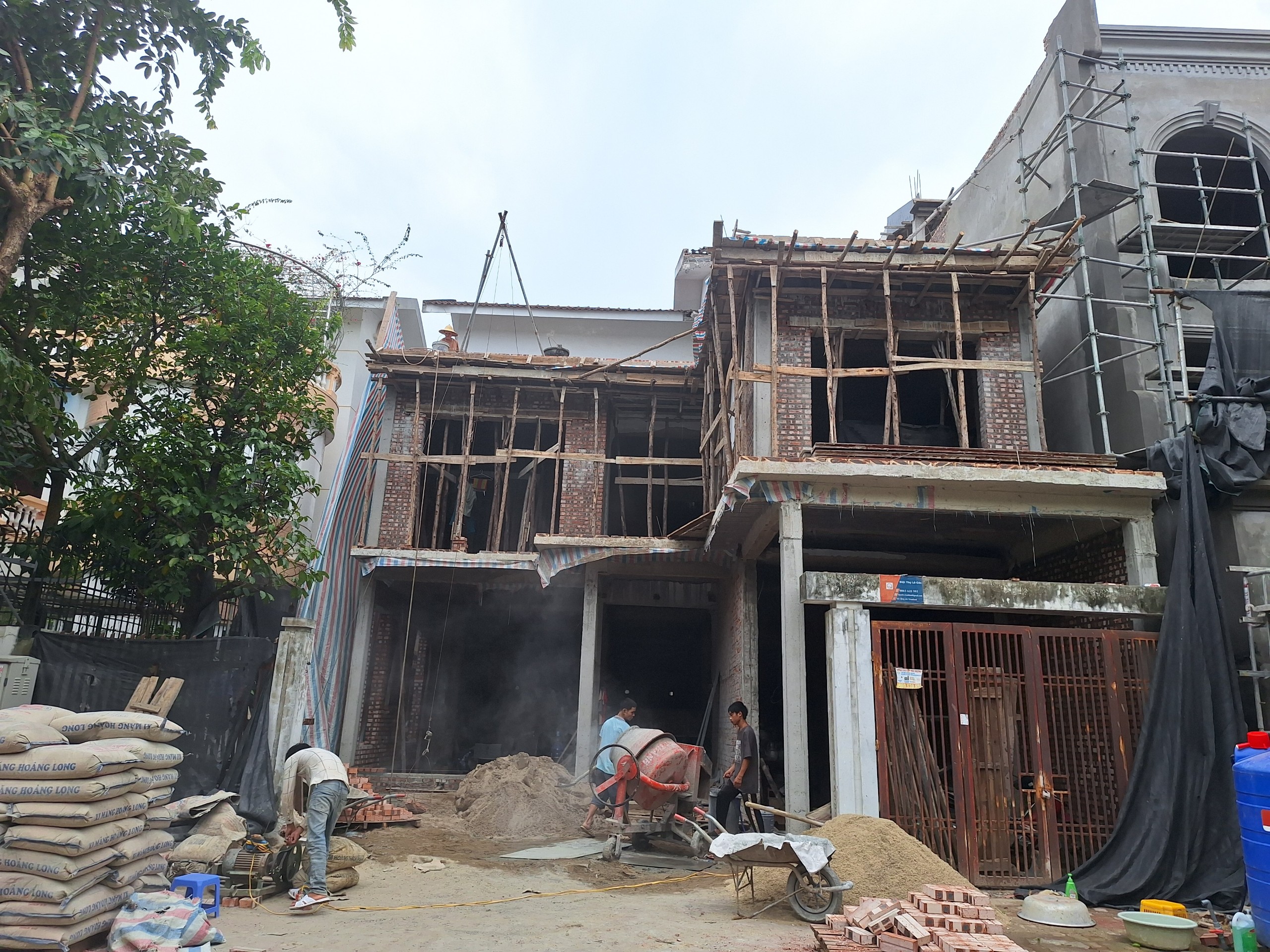 Vật liệu xây dựng còn đang ngồn ngang tại khu vực căn biệt thự BT04-22