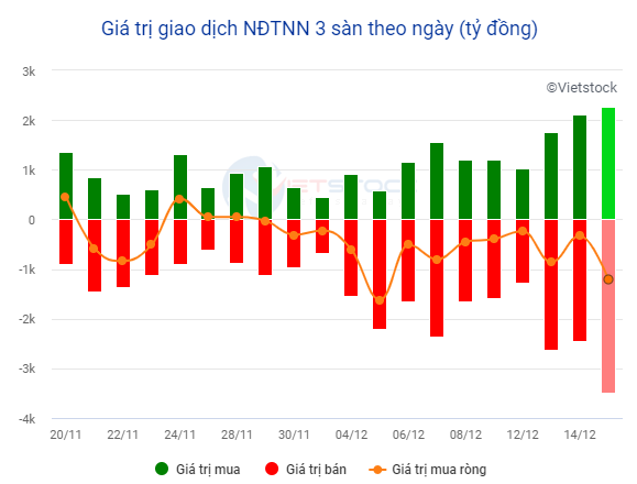 Phiên giao dịch ngày 15/12, thị trường mở cửa không mấy thuận lợi khi áp lực bán vẫn chiếm ưu thế và nhóm vốn hóa lớn đang đè chỉ số VN-Index.