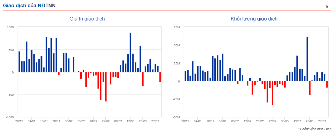 Chấm dứt chuỗi phiên mua ròng, khối ngoại đảo chiều bán xuyên suốt phiên với thanh khoản 254 tỷ. Khối này bán ròng tổng cộng 208 tỷ đồng trên sàn HOSE, trong đó STB (82 tỷ đồng) và VPB (77 tỷ đồng) là hai mã bị bán ròng nhiều nhất. Trên sàn HNX, khối ngoại bán ròng 4.6 tỷ đồng, trong đó SHS là mã bị bán ròng nhiều nhất với giá trị 4.4 tỷ đồng.