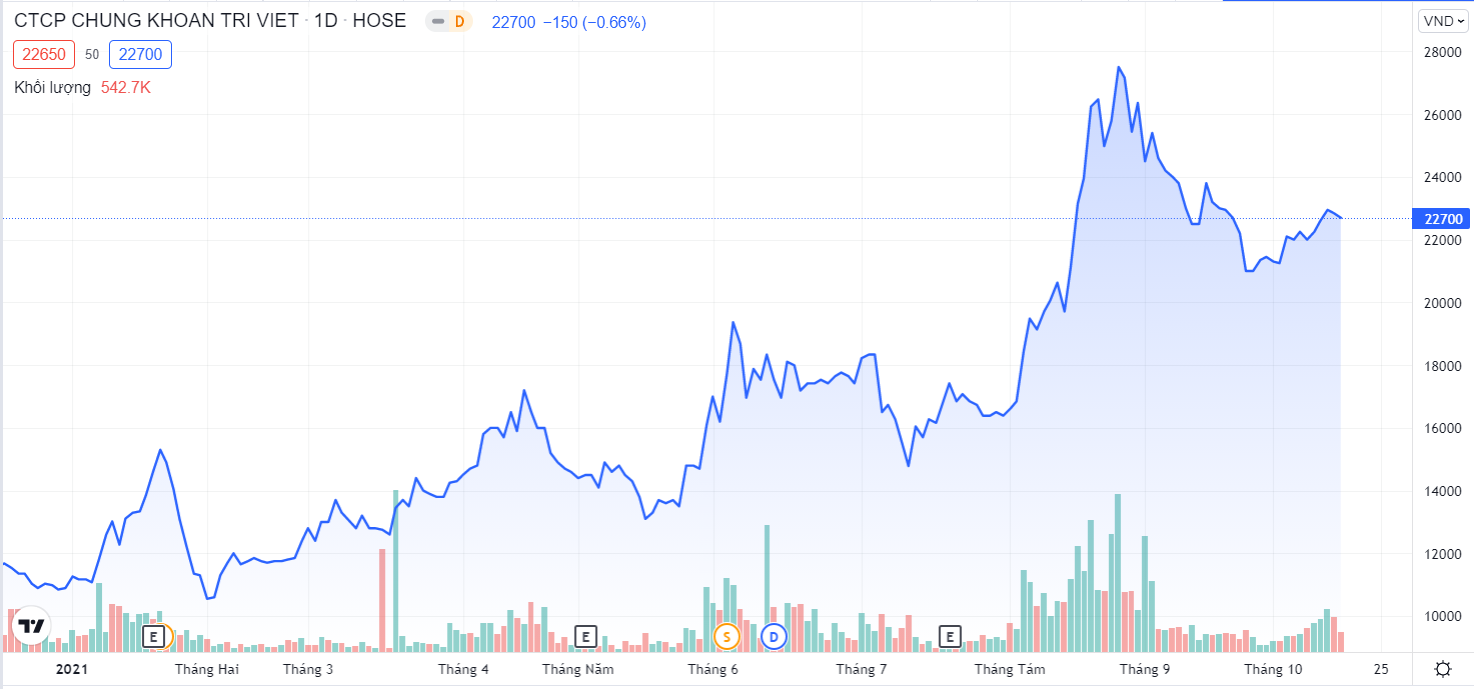 Diễn biến cổ phiếu TVB từ đầu năm đến nay. Nguồn: Vntradingview
