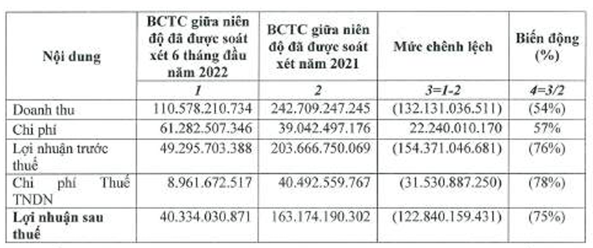 Theo BCTC bán niên đã được soát xét, 6 tháng đầu năm 2022, Chứng khoán Trí Việt ghi nhận doanh thu 110,5 tỷ đồng, giảm 54% so với cùng kỳ. Chi phí lại tăng 57% lên hơn 61 tỷ đồng. Kết quả lợi nhuận sau thuế chỉ còn 40,3 tỷ đồng, giảm tới 75% so với nửa đầu năm 2021.
