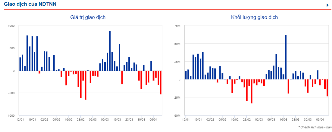 Tiếp tục duy trì sự thận trọng, khối ngoại duy trì vị thế bán ròng và lực bán mạnh hơn các phiên trước. Dòng tiền ngoại đã rút ròng 558 tỷ đồng trên sàn HoSE (trong tổng số gần 1.800 tỷ đồng giao dịch). STB vẫn tiếp tục bị nhà đầu tư “xả” mạnh nhất, với giá trị bán ròng 106 tỷ đồng. Được gom mạnh nhất là HDB chỉ đạt hơn 13 tỷ đồng. Còn lại lực mua rải rác ở PNJ, NLG, VHM, MIG, HDG…