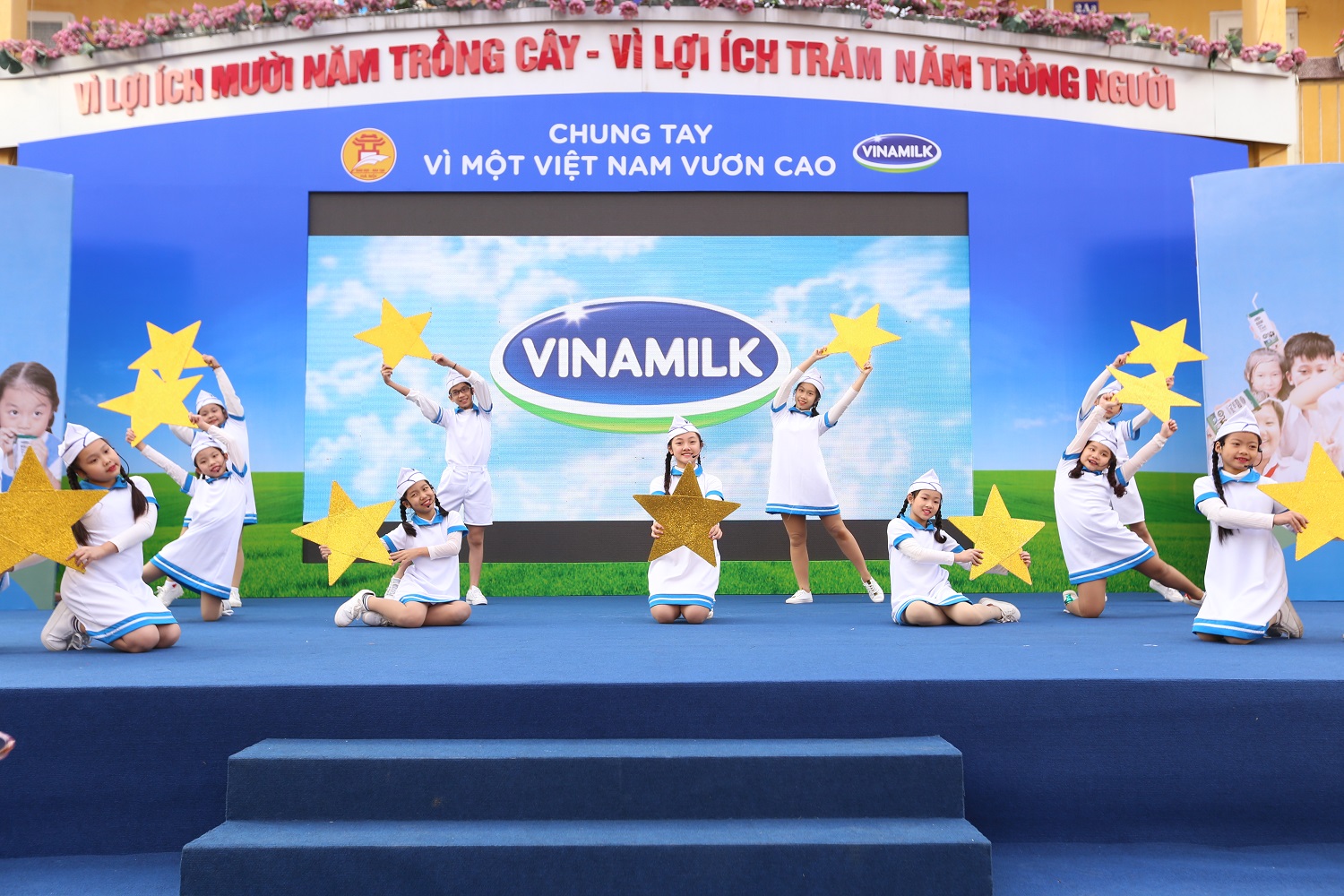 Đó chính là buổi Lễ phát động thực hiện chương trình Sữa học đường thành phố Hà Nội do Sở Giáo dục Đào tạo Hà Nội phối hợp với công ty Cổ phần Sữa Việt Nam tổ chức với sự tham dự của Đại diện Hội đồng Nhân dân, Uỷ ban nhân dân Thành phố Hà Nội, các sở ban ngành liên quan, đại diện Ban Giám Hiệu các trường mầm non và tiểu học tại quận Ba Đình, đại diện phụ huynh học sinh và hơn 2000 em học sinh của trường tiểu học Kim Đồng, Quận Ba Đình.