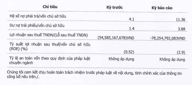 Theo bản báo cáo, dư nợ trái phiếu/vốn chủ sở hữu của công ty này đã tăng từ 1,4 lên 3,88 lần, tương đương hơn 104 tỷ đồng dư nợ trái phiếu.