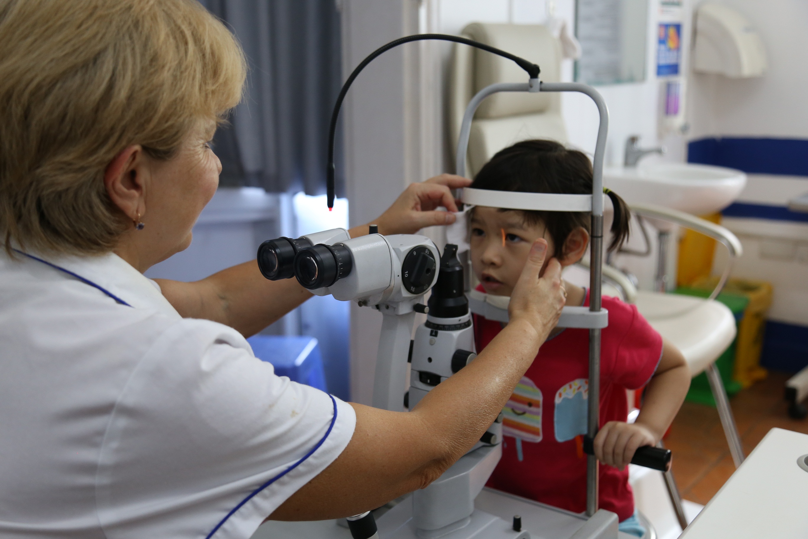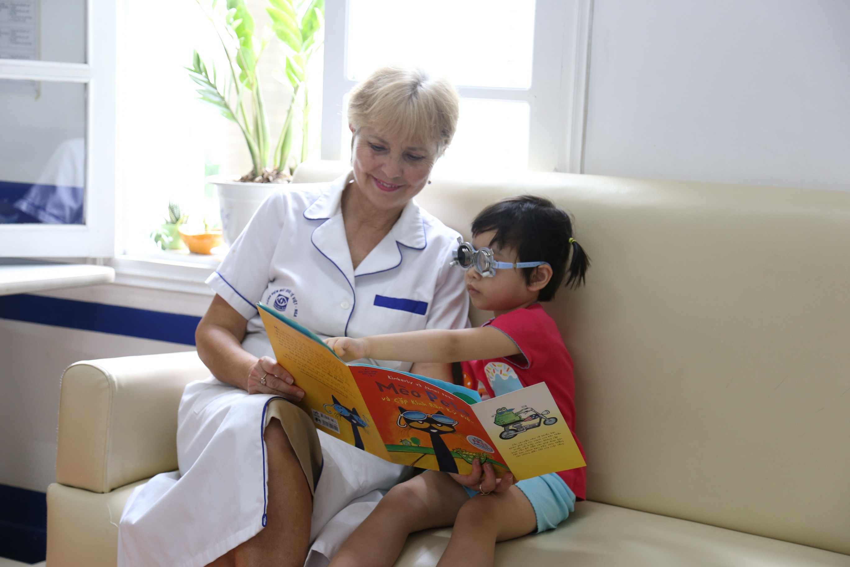Giáo sư Ermilova Irina hướng dẫn bệnh nhi bài tập kết hợp điều trị nhược thị |