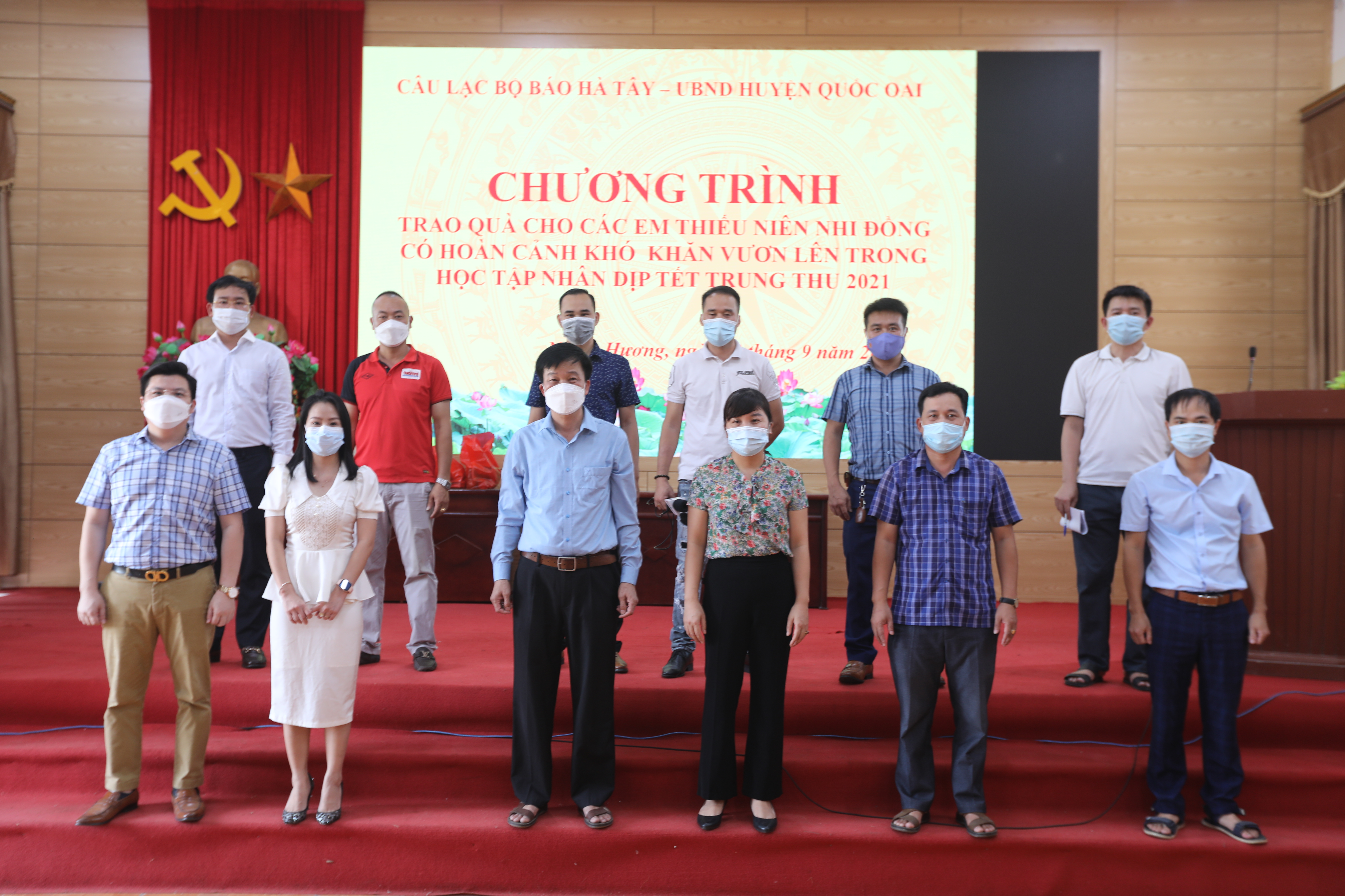 Tại huyện Quốc Oai, trong ngày 20/9, với sự phối hợp của UBND huyện Quốc Oai, CLB Báo chí Hà Tây do ông Lê Minh Tuấn -Phó Chủ tịch CLB làm trưởng đoàn cùng các doanh nghiệp đã trao 120 suất quà cho các cháu tại các xã Nghĩa Hương, Phú Cát, Ngọc Liệp và Phượng Cách, mỗi suất trị giá 200.000 đồng gồm bánh, kẹo, sữa, thạch và nước ngọt.