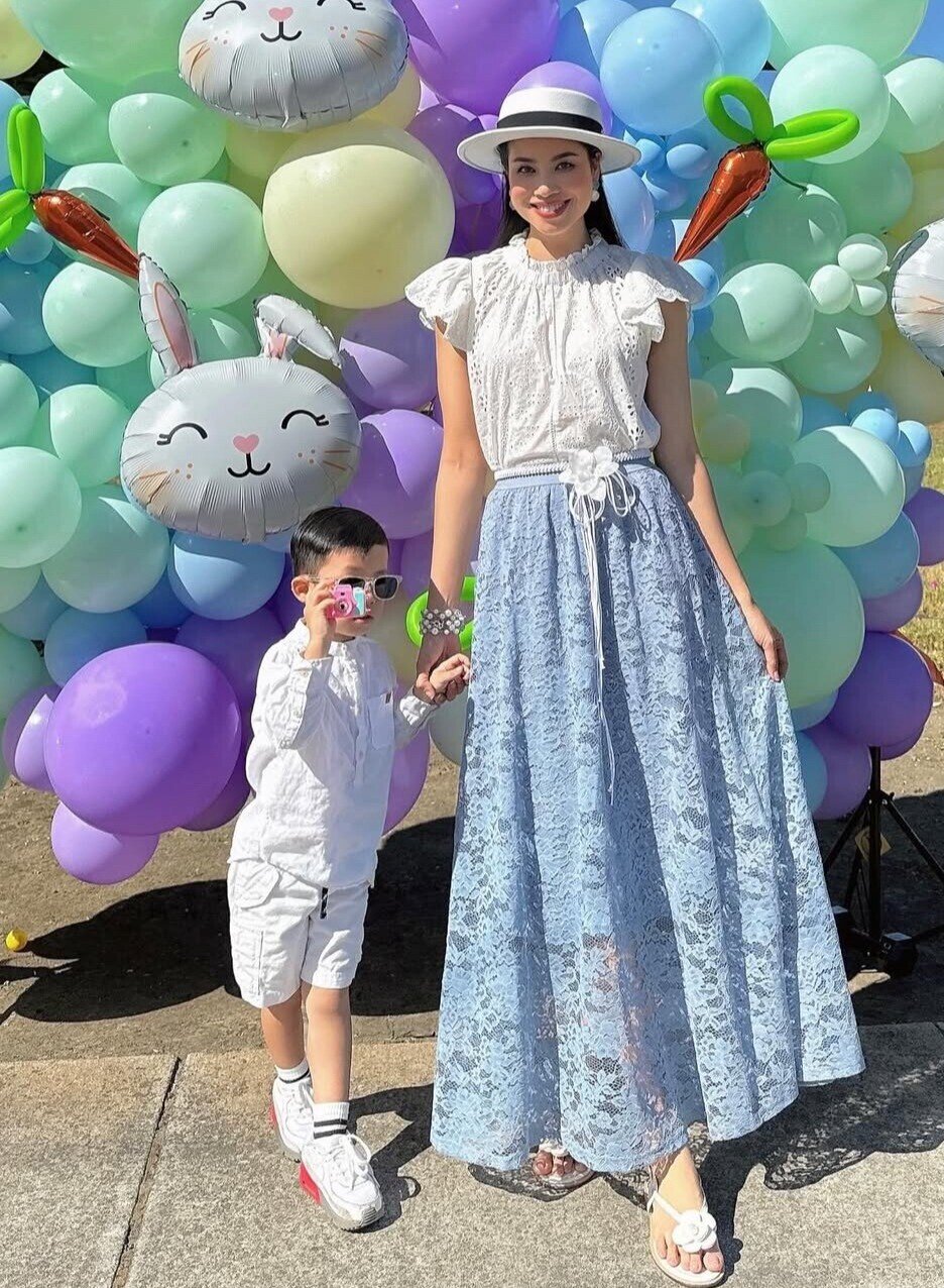 Vừa qua, Phạm Hương gây chú ý khi khoe ảnh khi cùng các con đi chơi ở Mỹ. Nàng hậu diện set áo - váy dài tông màu pastel mát mắt, phối cùng dép bệt gọn nhẹ.
