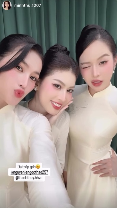 Đám cưới diễn ra khá riêng tư nên khi một số hình ảnh được chia sẻ trên mạng xã hội, dàn phù dâu mới "update" trên trang cá nhân. Theo đó, hội chị em thân thiết của Đỗ Hà bao gồm hoa hậu Thanh Thủy, Á hậu Ngọc Thảo, Á hậu Minh Thư... cũng diện áo dài trắng nền nã để làm phù dâu. Nhan sắc dàn phù dâu cũng không phải dạng vừa khiến đám hỏi càng nhận được sự quan tâm của công chúng.