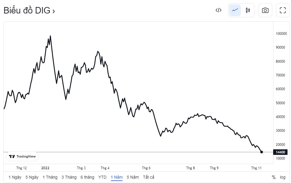 Lãnh đạo và cổ đông lớn bị bán giải chấp trong bối cảnh cổ phiếu DIG liên tục giảm mạnh và đang giao dịch quanh vùng đáy 2 năm. Phiên giao dịch sáng 8/11, cổ phiếu này tiếp tục giảm sàn xuống mức 14.400 đồng/cổ phiếu, giảm 85% so với đỉnh đạt được hồi giữa tháng 1 năm nay.