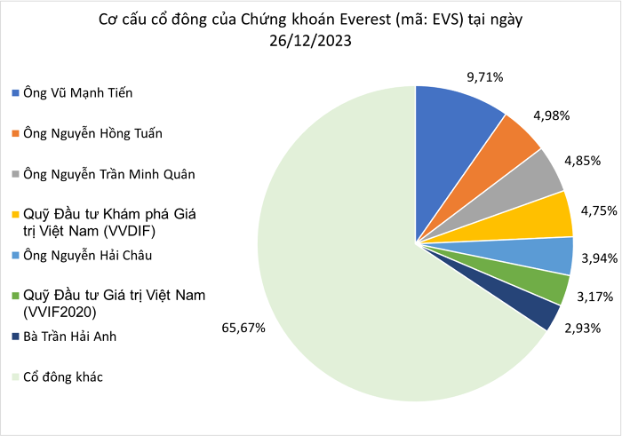 Diễn biến ngược chiều, ông Nguyễn Hồng Tuấn đã trở thành cổ đông lớn của Chứng khoán Everest sau khi mua 8,2 triệu cổ phiếu EVS (tương đương tỷ lệ 4,98%) trong phiên 13/12. Ước tính tổng giá trị này khoảng 70,52 tỷ đồng. Trước đó, ông Hồng Tuấn không nắm giữ cổ phiếu EVS.