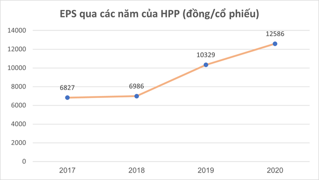 Ấn tượng nhất là sự tăng trưởng mạnh mẽ của lợi nhuận thuần khi tăng tới 27% dù doanh thu thuần hợp nhất chỉ tăng gần 7% lên mức 854 tỷ đồng. Chủ yếu nguyên nhân đến từ việc tỷ lệ tăng của giá vốn hàng bán nhỏ hơn so với tỷ lệ tăng doanh thu. Lãi trước thuế hợp nhất đạt 110,6 tỷ đồng, sau khi trừ đi chi phí thì HPP có lãi 105,3 tỷ đồng, tăng trưởng 21% so với thực hiện năm 2019. Thu nhập trên mỗi cổ phần (EPS) của công ty thuộc hàng cao nhất trên thị trường, đạt gần 12.586 đồng/cổ phiếu.