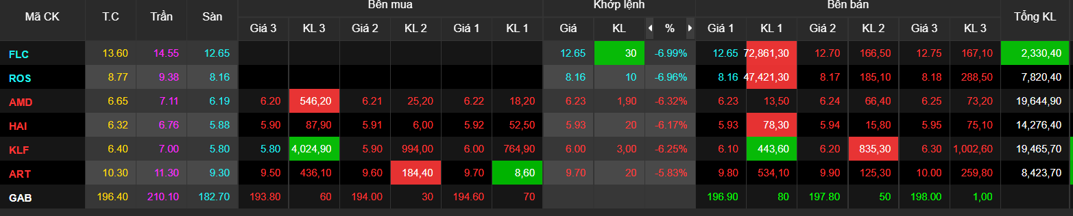 Phiên giao dịch sáng 29/3, FLC và ROS tiếp tục giảm kịch biên độ nhưng HAI, AMD, ART, KLF đã không còn giá sàn và có thanh khoản trở lại.
